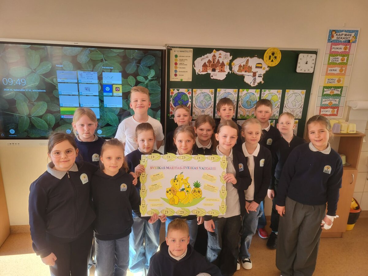 Salantų gimnazijos pradinių klasių mokiniai nuo 2026-04-13 iki 2026-04-17 pasaulinei sveikatos dienai paminėti vykdė projektą „Spalvų kraitė: vaisių ir daržovių pasaulis“. Pagrindinis projekto tikslas – skatinti vaikų domėjimąsi sveiku gyvenimo būdu ir formuoti teigiamą požiūrį į vaisių bei daržovių vartojimą.
